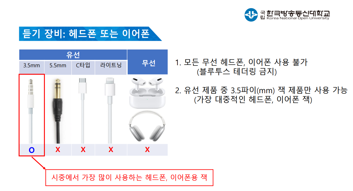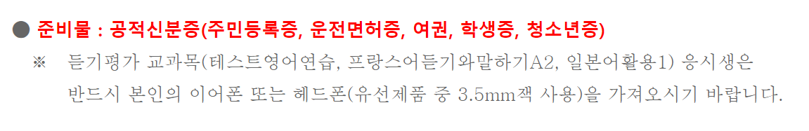 교과목 응시생은 반드시 본인의 이어폰 또는 헤드폰을 가져오시기 바랍니다.