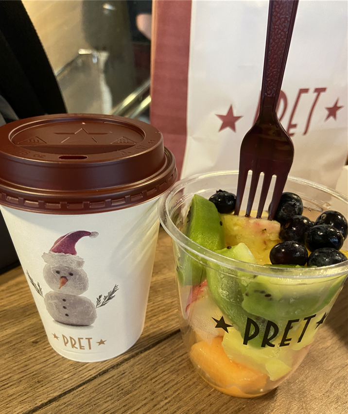 사진은 워털루 역에서 기차 기다리면서 먹은 커피와 과일.