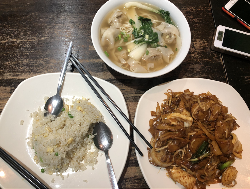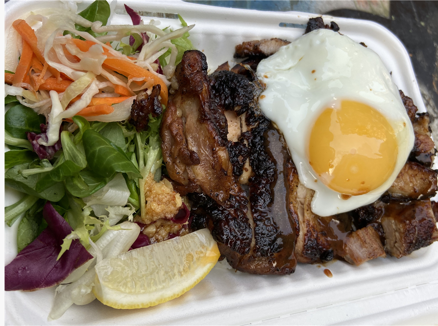 마침 점심시간에 지나가다 본 가판대에서 산 도시락입니다. 햄버거, 볶음밥 등 여러 나라 음식들을 일회용 용기에 담아서 판매합니다.
