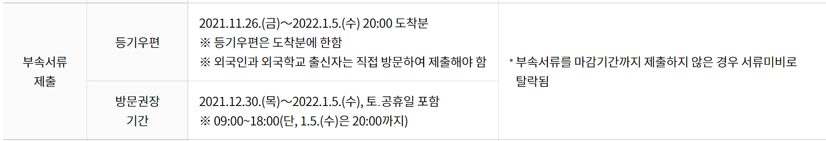 합격자 발표는 2022년 1월 26일에 홈페이지에서 조회 가능 하고, 2월 3일까지 등록을 해야 합니다.