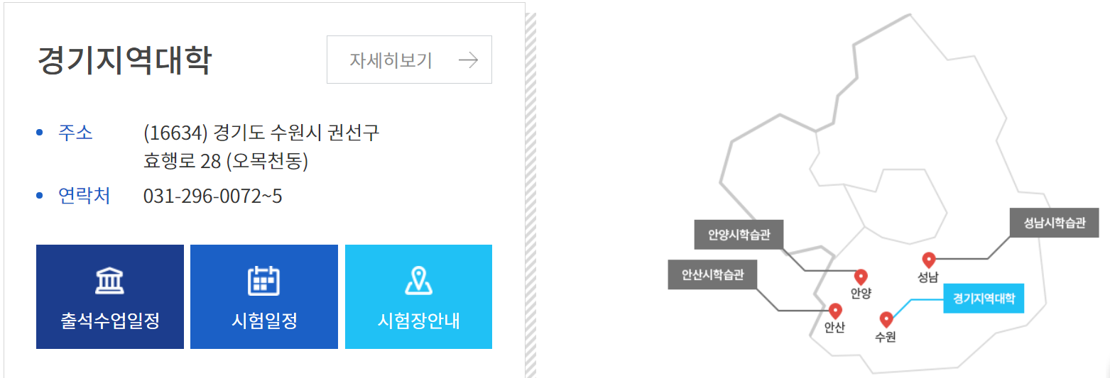 그밖에 다른 지역대학의 위치는 아래 홈페이지에서 검색 가능합니다.