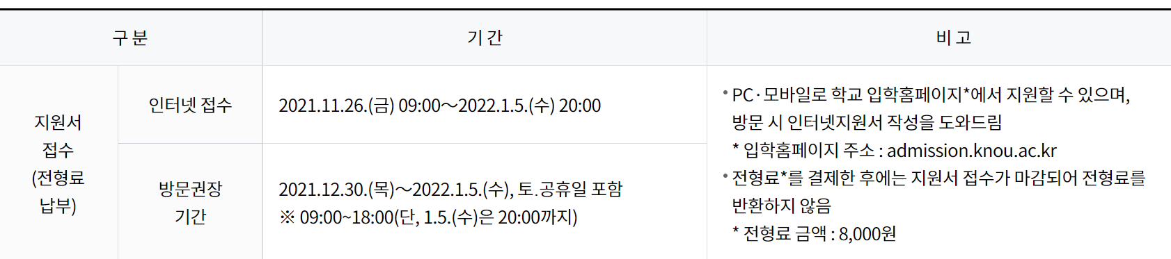 방송통신대학교 방통대 1학기 편. 입학 전형 일정이 나왔습니다.
