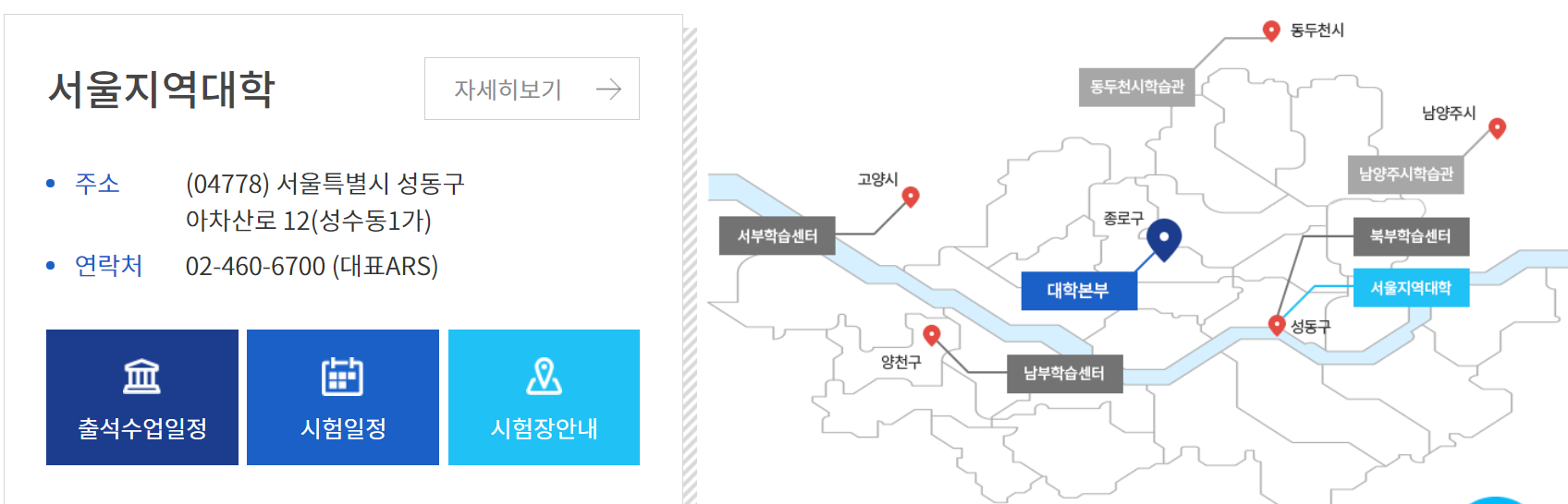 지역대학 이외에 학습관, 학습센터, 본부 등이 있습니다.