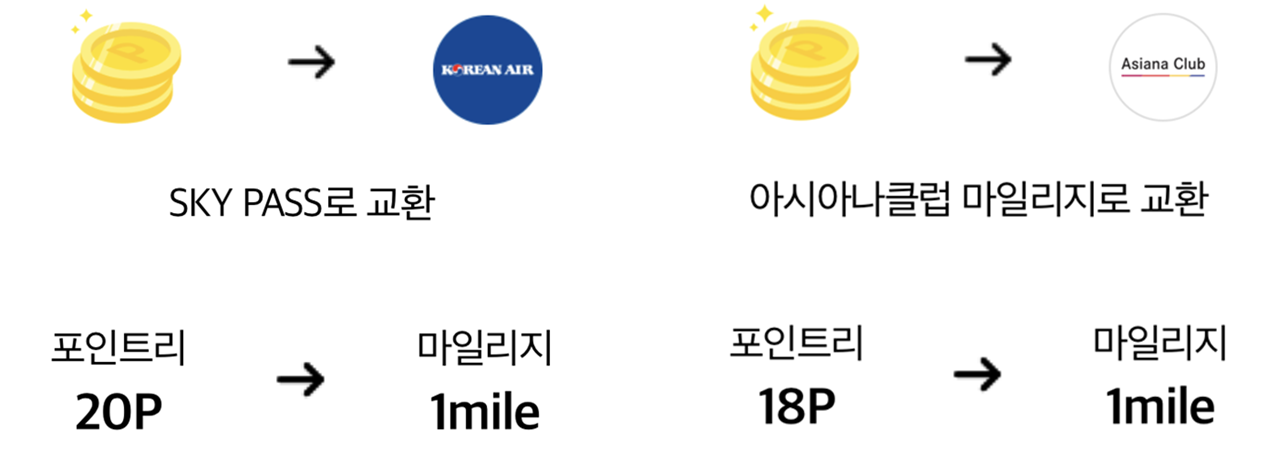 항공 마일리지가 필요하다면 카드 발급시 바우처를 포인트리로 받고, 포인트리를 항공마일리지로 전환하는 하는 방법도 있습니다.